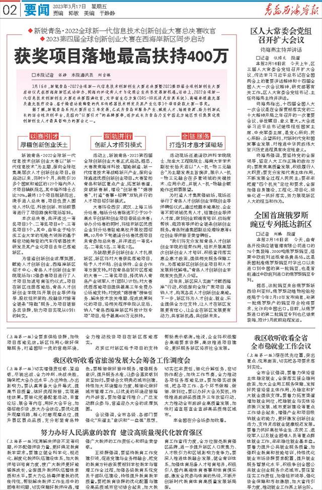 近年来,新区深入实施“才赋西海岸”行动,积极面向全球广聚项目、海纳人才,构筑各类人才创新创业高地。下一步,新区将为人才创业、就业、乐业提供全方位支持,让人才在新区发展更有信心,让企业在新区发展更有动力,共享新机遇,共创新未来。