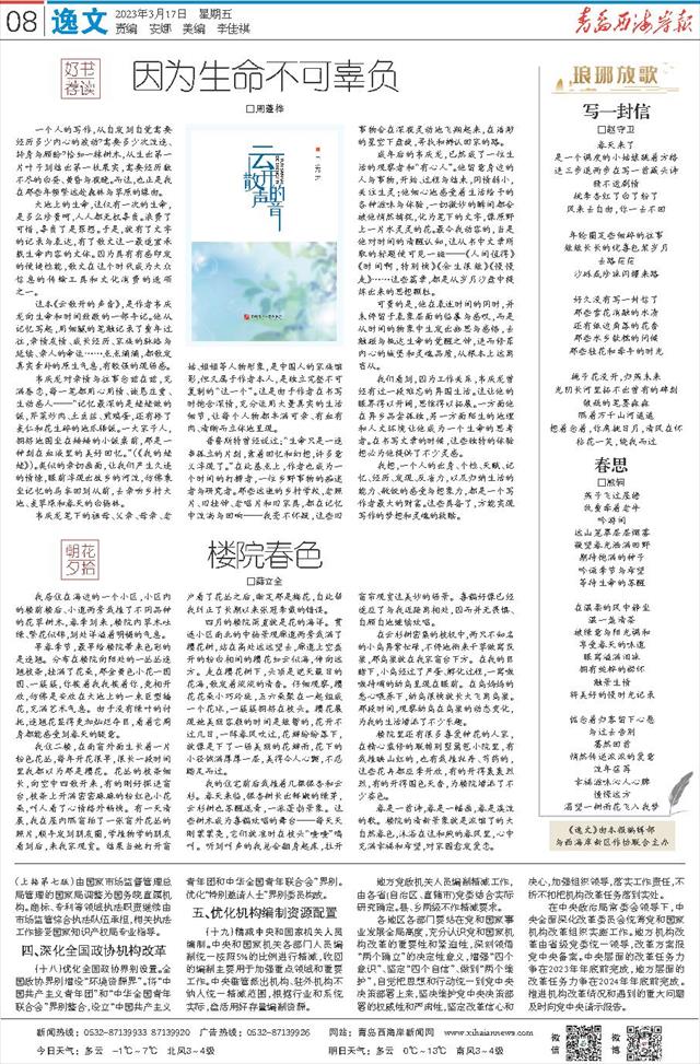 因为生命不可辜负   □周蓬桦