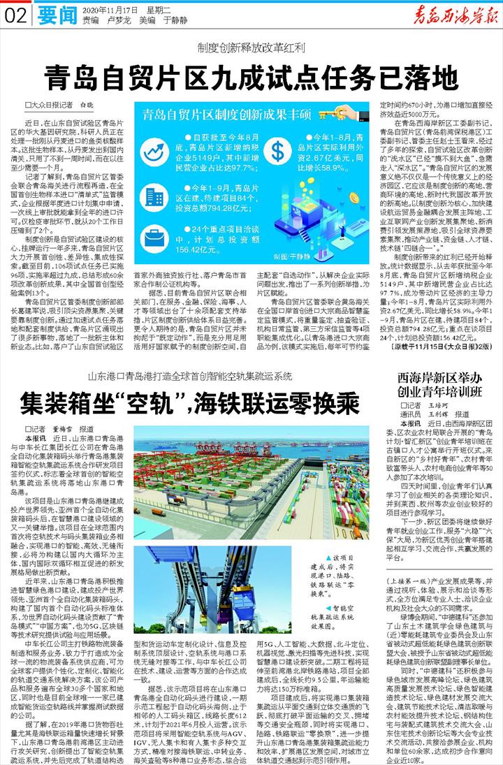青岛自贸片区九成试点任务已落地