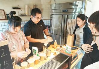 ▲韩超(左二)参与打造了徐村“村里咖啡”项目。(王台街道供图)