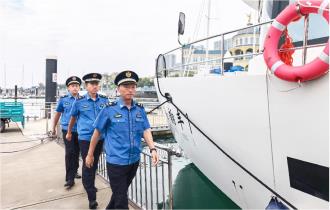 9月24日,东方影都海韵丰游艇码头的海面波光粼粼,数十艘游艇整齐地停靠在泊位上。码头上,区综合行政执法局港航执法中队执法人员与第三方技术专家,准备开展例行安全生产检查。