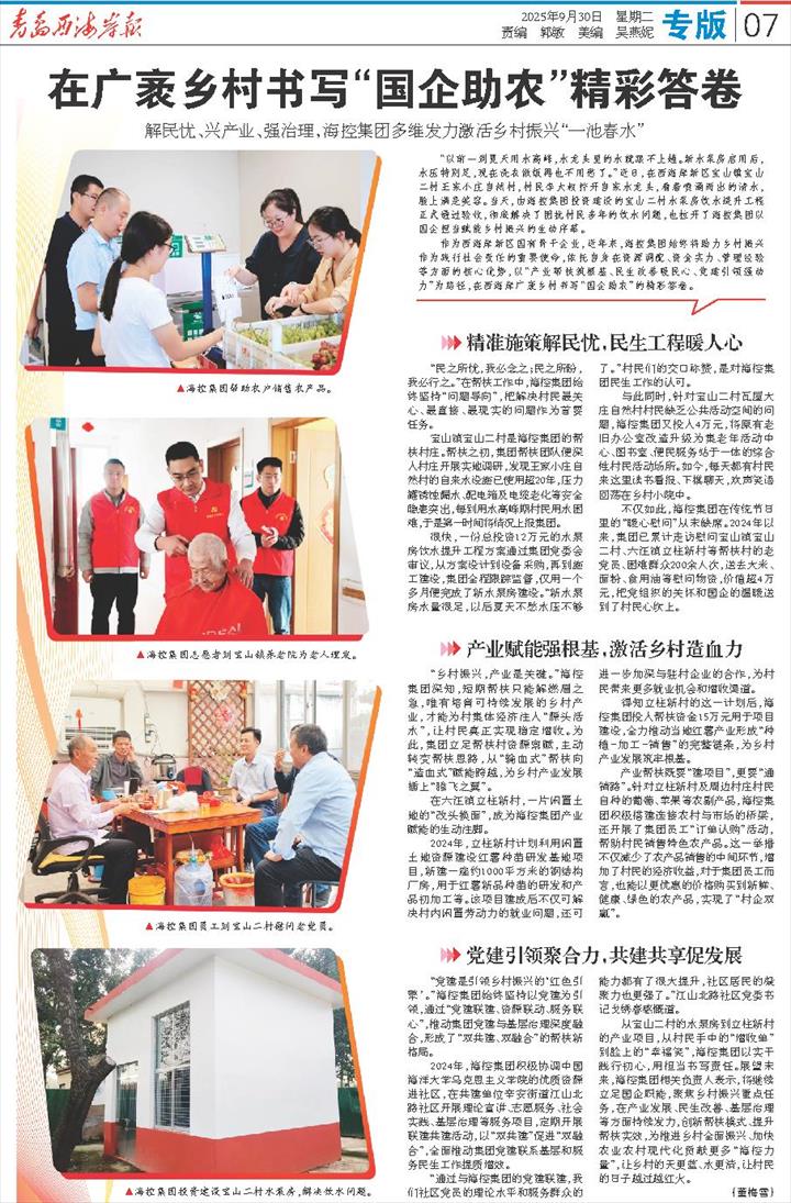 解民忧、兴产业、强治理,海控集团多维发力激活乡村振兴“一池春水”