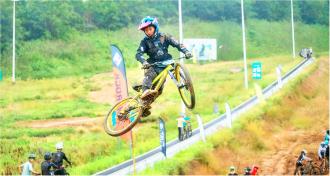 专业与趣味兼具,自然与运动相融。本次赛事依托藏马山32平方公里规划区内的山林资源,打造出“专业+生态”双优赛道。赛道落差80米、长度1500米,串联植被林道段与开阔视野段,设置连续驼峰、8米抛台等技术环节。本次赛事还借力原滑雪场缆车设施实现高效转运,成为“吸睛吸客”的亮点。“在层林尽染的山路上飞驰,既能享受美景,又能体验运动带来的激情。”来自济南的参赛选手李女士在赛后直呼过瘾。