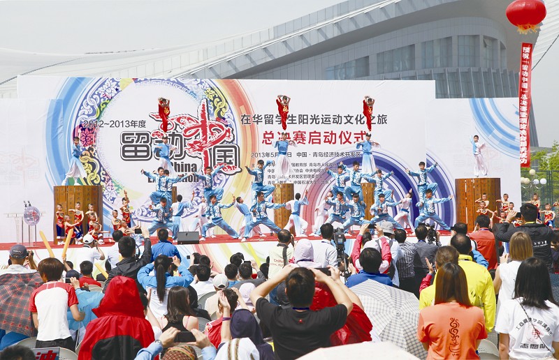 本报5月30日讯 今天上午,首届“留动中国——在华留学生阳光运动文化之旅”总决赛在中国石油大学(华东)体育场启动。中国大学生体育协会、教育部国际合作与交流司相关领导,市委常委、副市长王广正,市委常委,西海岸经济新区工委书记、管委主任张大勇等出席本次活动启动仪式,并共同擂响总决赛战鼓。